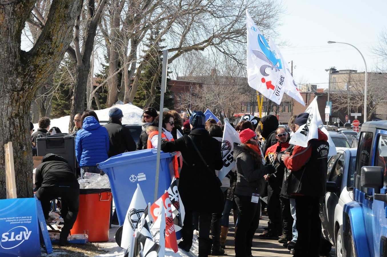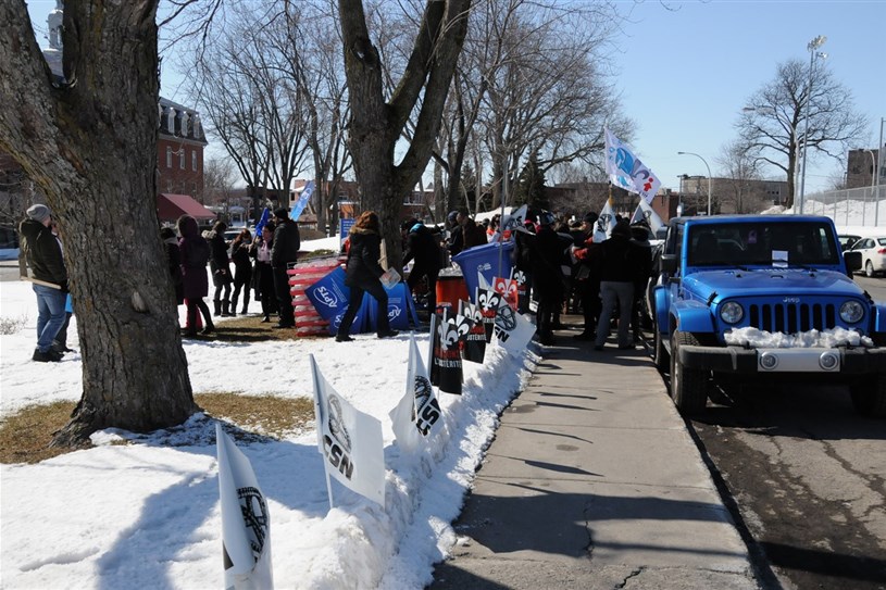 Massés devant le Centre d’hébergement Drapeau-Deschambault à Sainte-Thérèse, les salariés du domaine de la santé en avaient particulièrement contre les réformes imposées par le ministre de la Santé, Gaétan Barrette.
