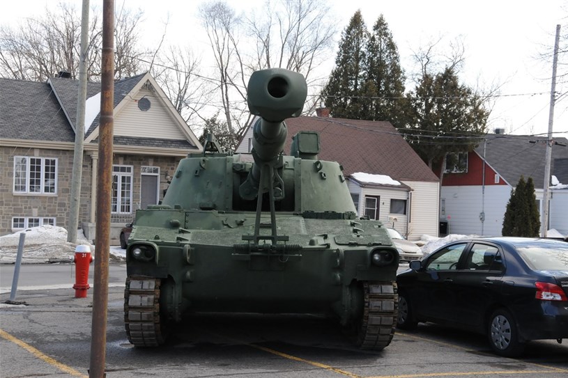 Un obusier de près de 20 tonnes stationné à proximité du boulevard Curé-Labelle à Sainte-Thérèse attire l’oeil des automobilistes depuis jeudi après-midi.