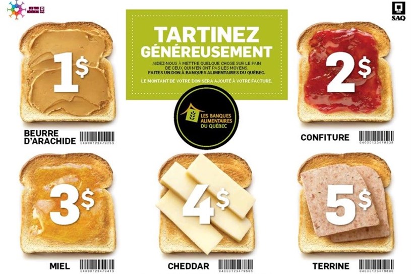 Pour l'occasion, la SAQ remettra 1 $ au réseau des Banques alimentaires du Québec. Cette campagne, qui célèbre son cinquième anniversaire, a pour mission de contribuer à la lutte contre la faim.