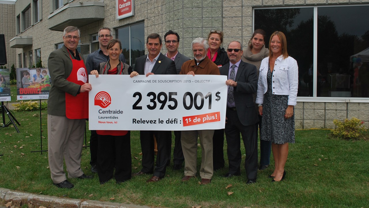 Centraide Laurentides s'est fixé un objectif de 2 395 001 $ pour la campagne annuelle 2015