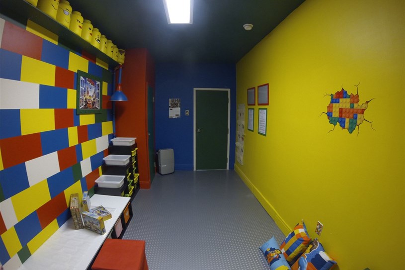 Malgré des différences et particularités d’un enfant à l’autre, l’équipe d’intervenants de l’unité l’Escale a identifié au fil du temps un champ d’intérêt qui les rassemblait tous : les Legos. Grâce à un financement offert par la Fondation du Centre jeunesse des Laurentides, l’équipe a mis la main à la pâte pour créer cet environnement attrayant pour les jeunes. La peinture détaillée et colorée du local a d’ailleurs été réalisée bénévolement par l’équipe d’intervenants qui travaillent avec ces jeunes.
