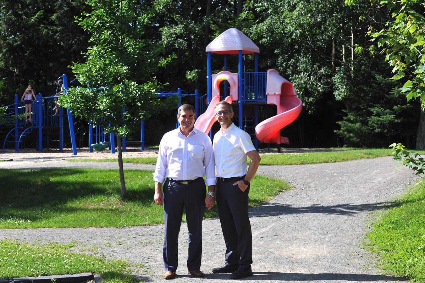 Le maire de Blainville, Richard Perreault, et le conseiller du district de la Renaissance, François Garand, ont annoncé plusieurs améliorations au parc d’Amos.