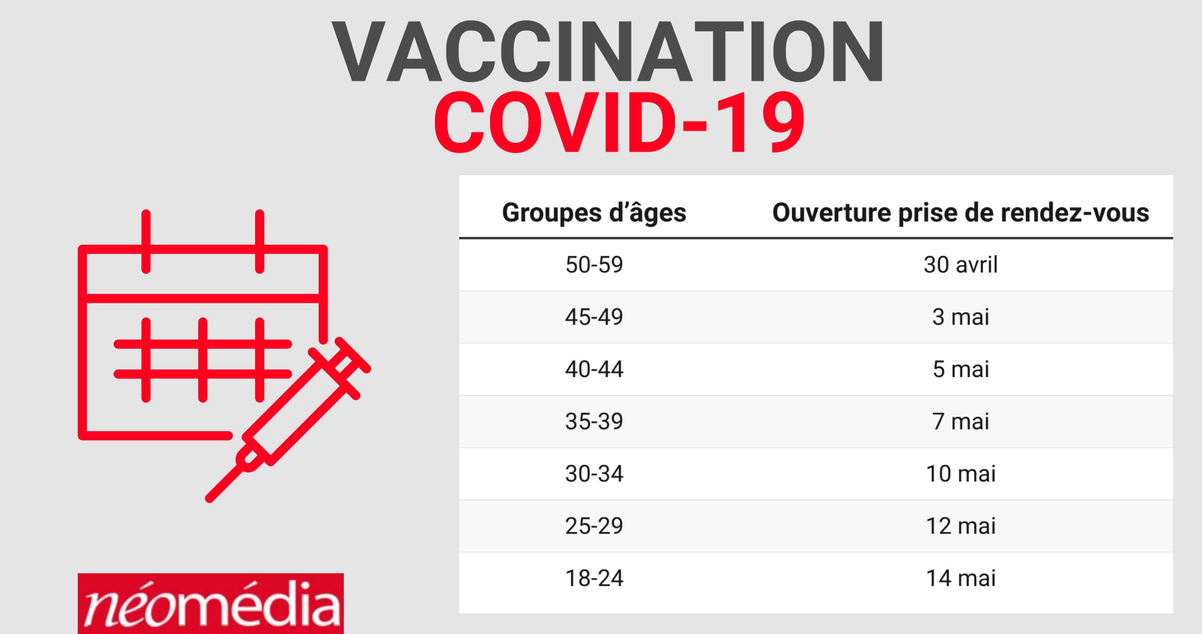 Voici quand vous pourrez prendre votre rendez-vous, selon votre groupe d’âge.